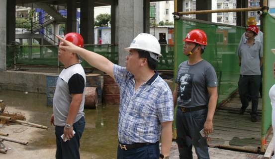 2015年6月13日周六上午,集團公司召開完周行政工作例會后,在總經(jīng)理徐遠(yuǎn)征同志的帶領(lǐng)下,市場管理部、工程管理部、招投標(biāo)部、綜合管理部、市政分公司負(fù)責(zé)人第一站來到蔡甸大拇指廣場檢查施工現(xiàn)場文明施工整改情況,總經(jīng)理首先肯定了上次檢查整改后施工現(xiàn)場明顯改觀,隨后就進一步完善圍擋角區(qū)、安全帽佩戴等進一步提出了要求;第二站來到大集張堡小學(xué)施工現(xiàn)場,對墻基坑深度提出了嚴(yán)格按圖紙施工的規(guī)范要求,安排由公司工程管理部對該施工工地實行24小時嚴(yán)格監(jiān)管的做法得到了校方領(lǐng)導(dǎo)的充分肯定。