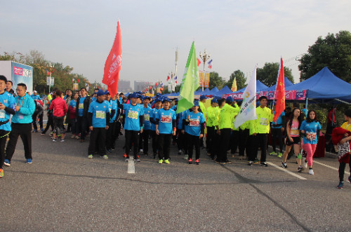 早上8點(diǎn)半,隨著一聲發(fā)令槍響,2016武漢后官湖半程馬拉松正式開賽!本次賽事共設(shè)兩項(xiàng)比賽,由2000名選手參加的21公里半馬跑和4000名選手參加的5公里健康跑組成的跑步大軍,共同圍繞著后官湖國(guó)家濕地公園,途徑風(fēng)光旖旎的原生態(tài)景觀,感受最清新爽朗的江城奔跑。在人山人海的跑步大軍里有一群身穿藍(lán)色戰(zhàn)服的團(tuán)隊(duì)——湖北大集建設(shè)集團(tuán)有限公司員工,他們手持企業(yè)司旗,步伐有力,活力四射的點(diǎn)綴在武漢第一的郊野綠道上,成為后官湖深秋最亮眼的風(fēng)景線!讓我們共同迎接這場(chǎng)盛大的賽事!