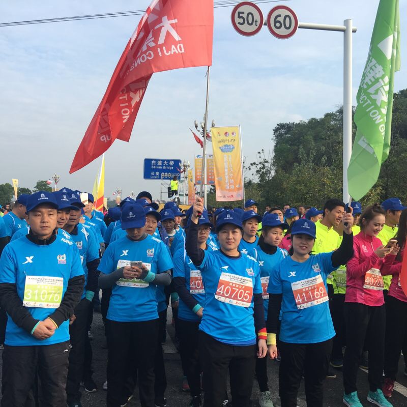 雖然下了一周的雨而且此天氣將會持續(xù)幾天,可是仍然阻擋不了大家參賽的勁頭和熱情,天不亮就早早起床直赴公司大院集合整裝待發(fā),所有參賽人員到齊后乘坐巴士前往比賽主會場提前進行拉伸運動。我們到達目的地時天還剛蒙蒙亮,氣溫也很低,但是已經(jīng)聚集了不少參賽人員及后勤保障、治安人員,個個精神抖擻、容光煥發(fā),都期待著順利地跑出好成績!