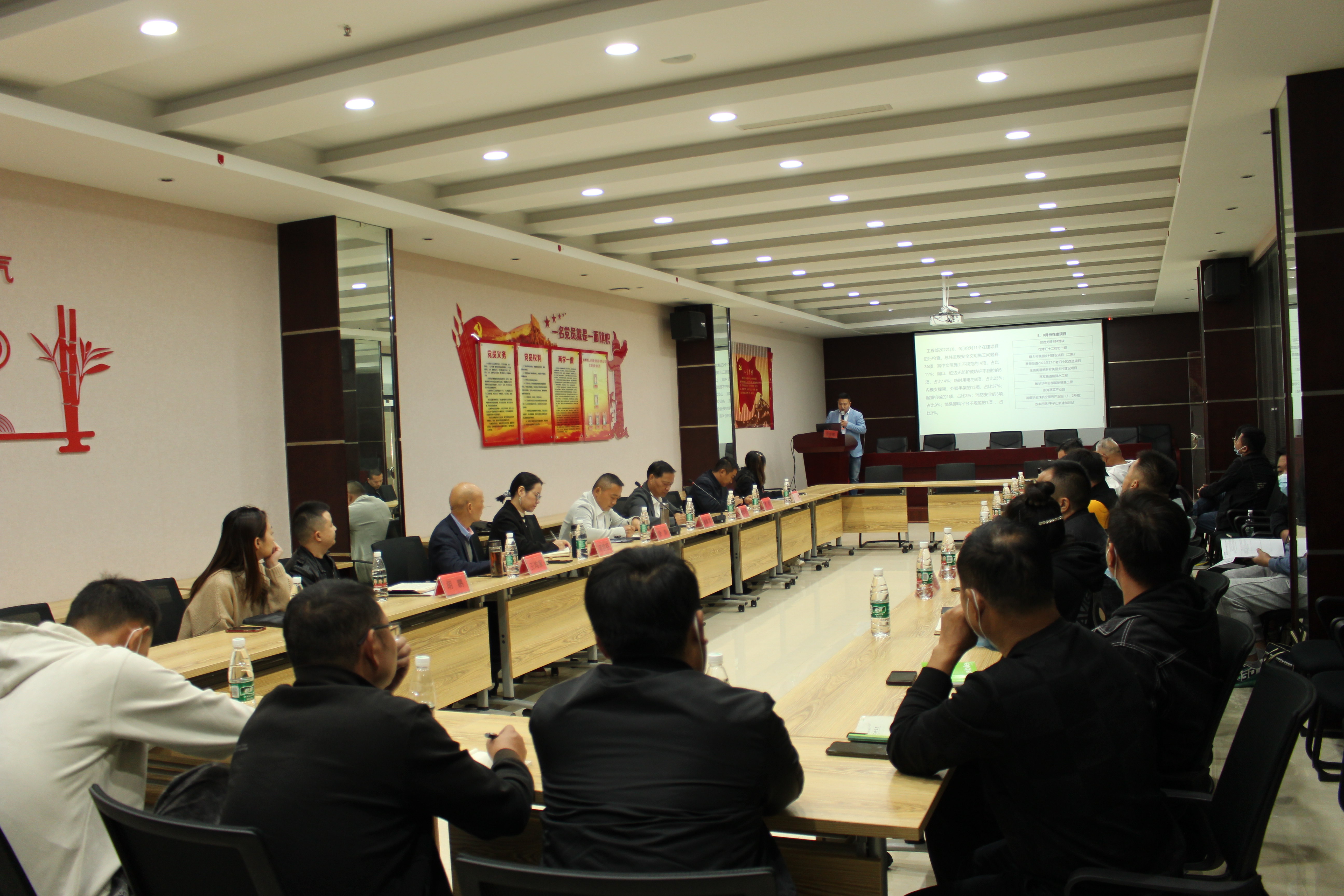 會(huì)議現(xiàn)場(chǎng),工程部對(duì)8、9月項(xiàng)目安全、質(zhì)量檢查情況進(jìn)行了詳細(xì)通報(bào)。隨后,蔡甸街道27個(gè)老舊小區(qū)改造、鴻盛華產(chǎn)業(yè)園、世茂48#地塊、玉賢楊新村美麗鄉(xiāng)村、常發(fā)路道路排水等項(xiàng)目先后對(duì)項(xiàng)目當(dāng)前存在的問(wèn)題進(jìn)行匯報(bào),公司領(lǐng)導(dǎo)及相關(guān)職能部門(mén)針對(duì)項(xiàng)目匯報(bào)情況逐一回應(yīng)解答。