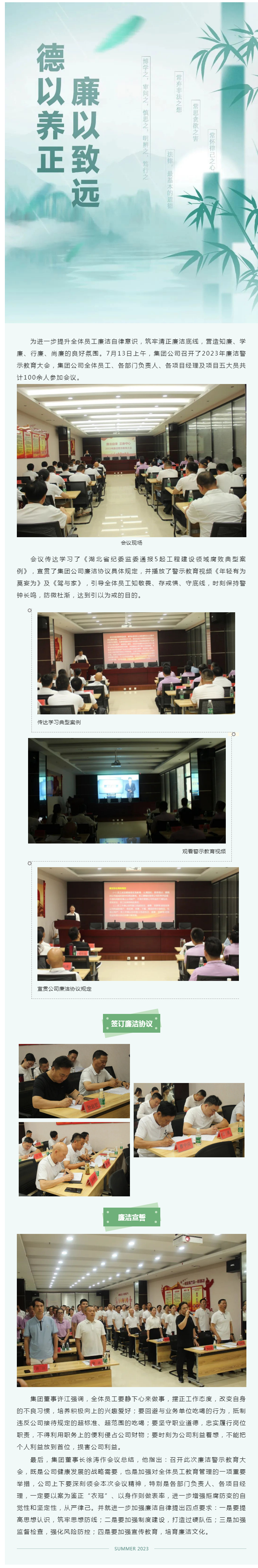 集團公司召開2023年廉潔警示教育大會