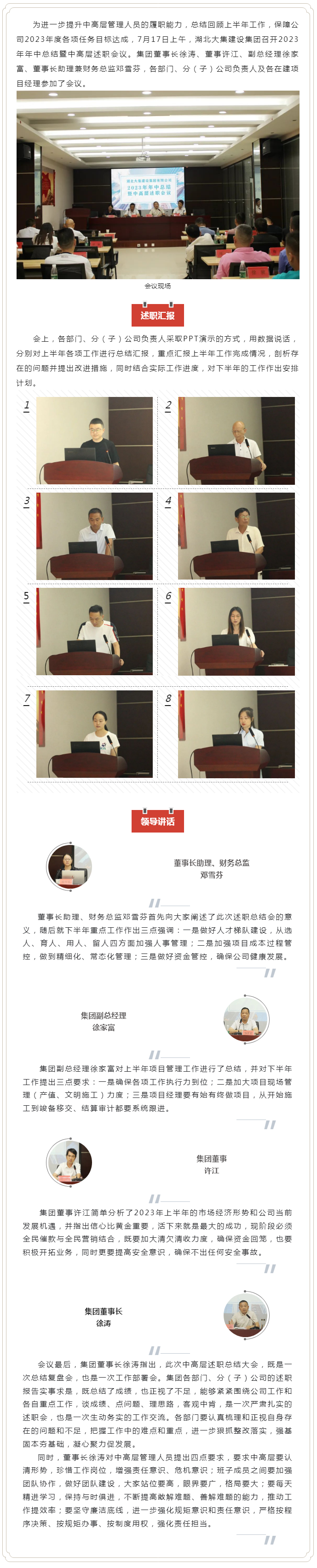 述職總結(jié)強(qiáng)管理 凝心聚力共奮進(jìn)|集團(tuán)公司召開(kāi)2023年年中總結(jié)暨中高層述職會(huì)議