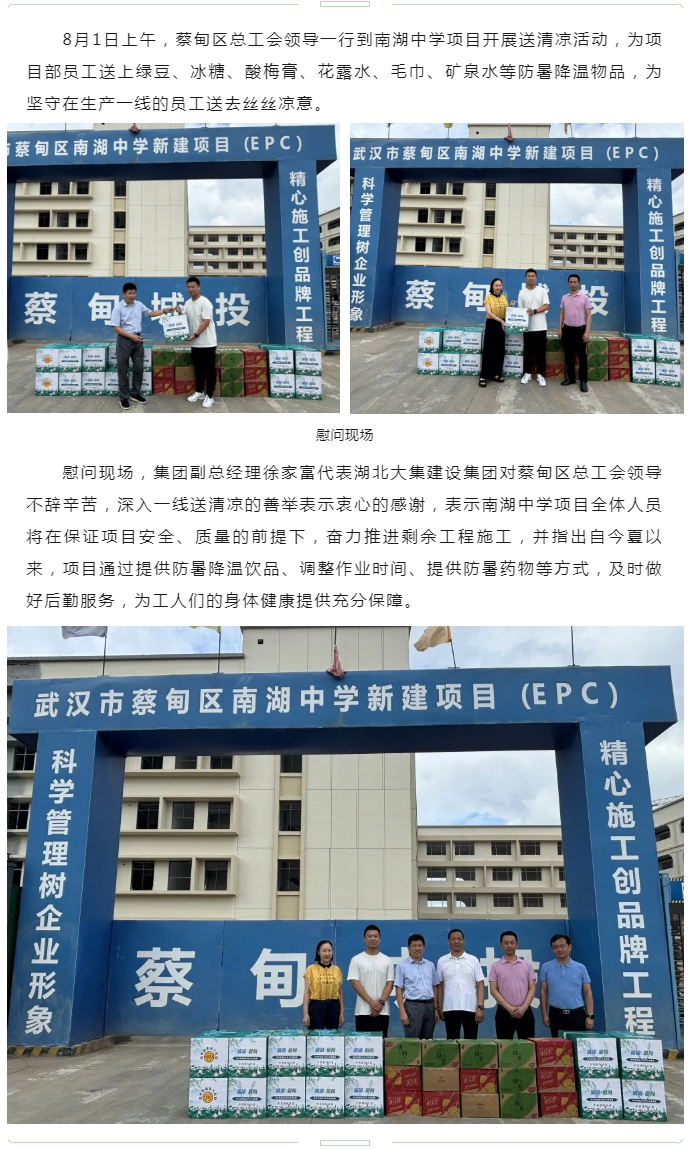 蔡甸區(qū)總工會(huì)“送清涼”慰問(wèn)南湖中學(xué)項(xiàng)目