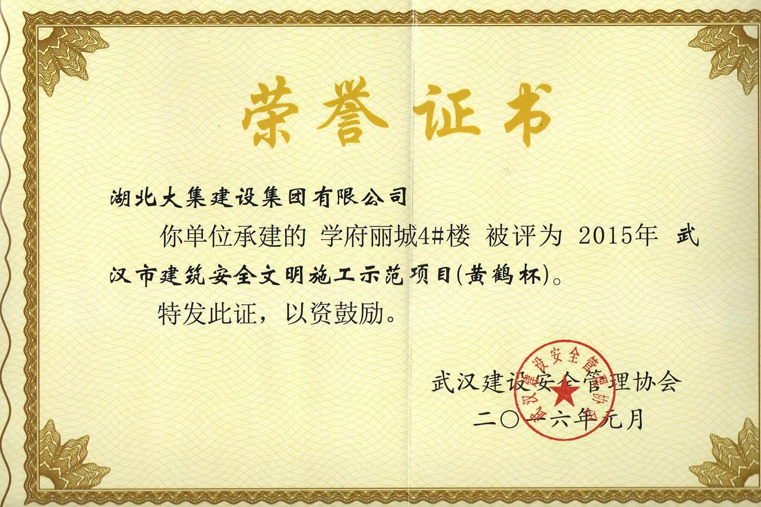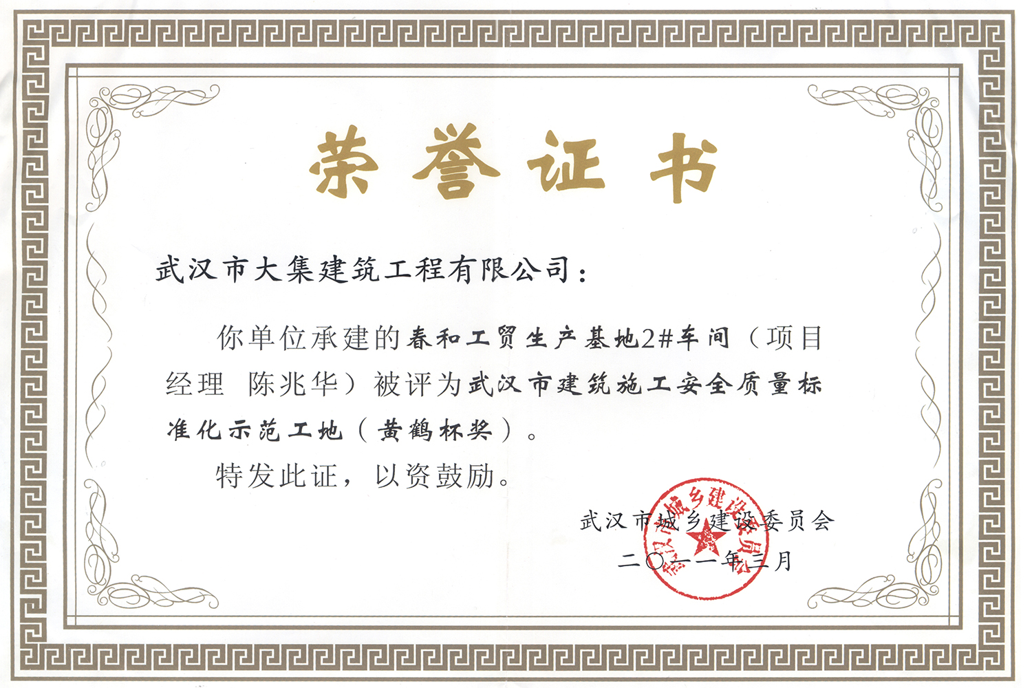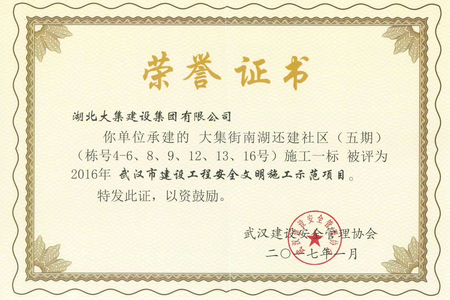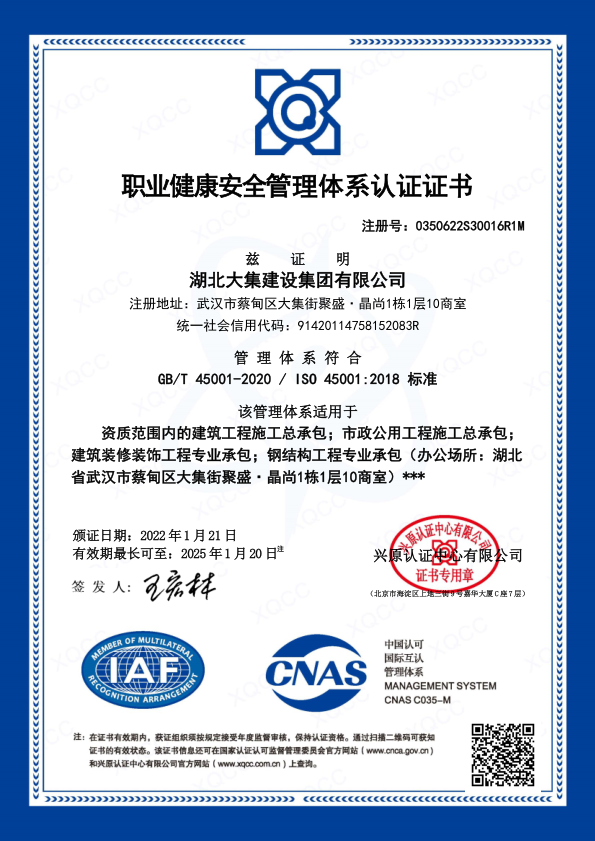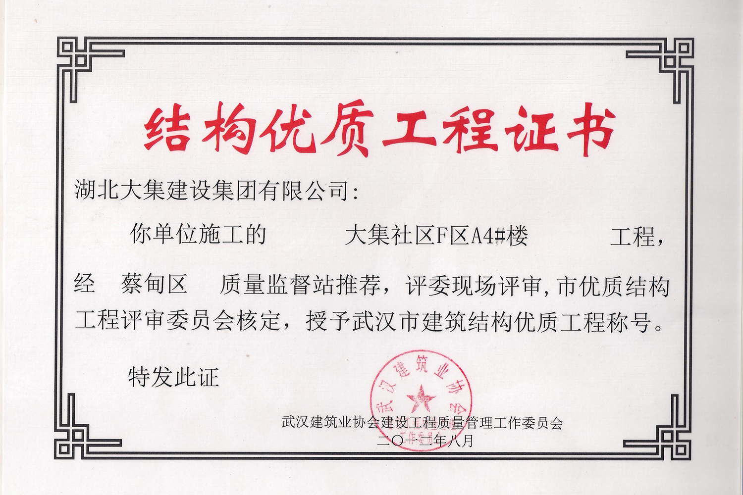 集團秉持“安全是紅線,質(zhì)量是品牌,文明施工是形象”的企業(yè)宗旨,不斷加強全面管理,注重提高自身素質(zhì),以完美的履約、優(yōu)良的質(zhì)量、滿意的服務,贏得了信譽。近年來,湖北大集建設集團先后與中石化集團、中鐵上海工程局、中建八局、中鐵十二局、碧桂園集團、世茂集團、綠地集團等央企、國企、地方標志性建設單位合作,先后承建了“碧桂園知音豪庭”項目、“碧桂園光谷云境”項目、“大集G區(qū)蓮溪花園”項目等多個高層住宅小區(qū);承建了世茂龍灣46#、47#、48#地塊、花博匯桃李春風二期等多個精品高端別墅群項目;承建了“南湖中學”、“南湖小學”、“南湖幼兒園”、“博奧幼兒園”等多個教育配套項目;承建了“孝感英眾超算終端科技產(chǎn)業(yè)園”、“鴻盛華全球航空服務產(chǎn)業(yè)園”、“盟盛汽車產(chǎn)業(yè)園”、“中原印務晶毅”等多個具有特殊設備安裝需求的鋼、混結構工業(yè)廠房項目;承建了“常福商務廣場”等大型商業(yè)綜合體;承建了后官湖綠道二期、三期,常貴路西延伸段、黃星大道等多條大型道路市政項目;自主開發(fā)了“聚盛晶尚”住宅項目,改善人居環(huán)境,引領綠色棲居新領域;所有工程嚴格執(zhí)行施工作業(yè)全過程質(zhì)量、安全管理,多個項目被省、市級監(jiān)管單位授予“省結構優(yōu)質(zhì)”、“省安全文明施工現(xiàn)場”、“市結構優(yōu)質(zhì)”、“市安全文明施工示范項目”、“樣板工地”等榮譽稱號。