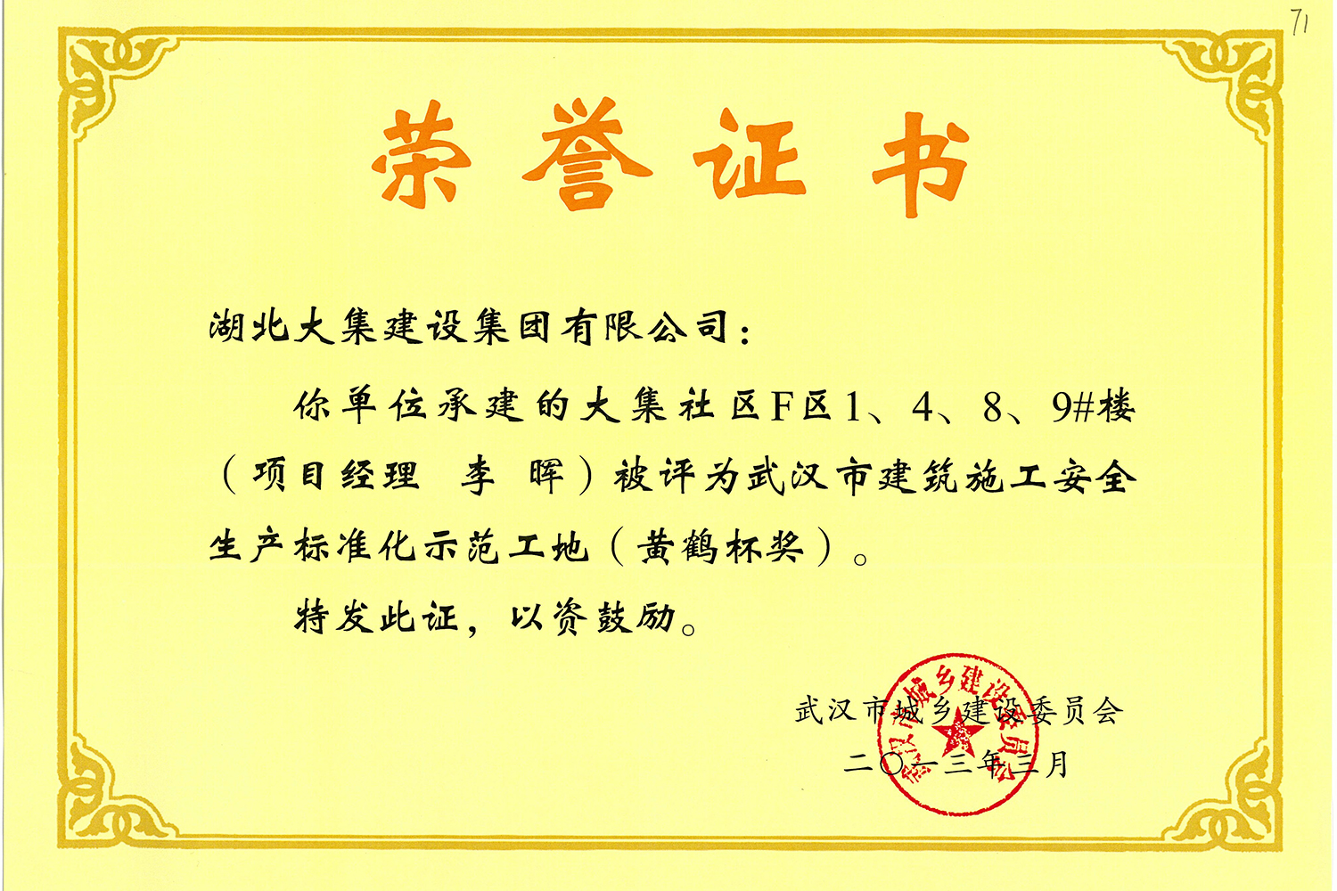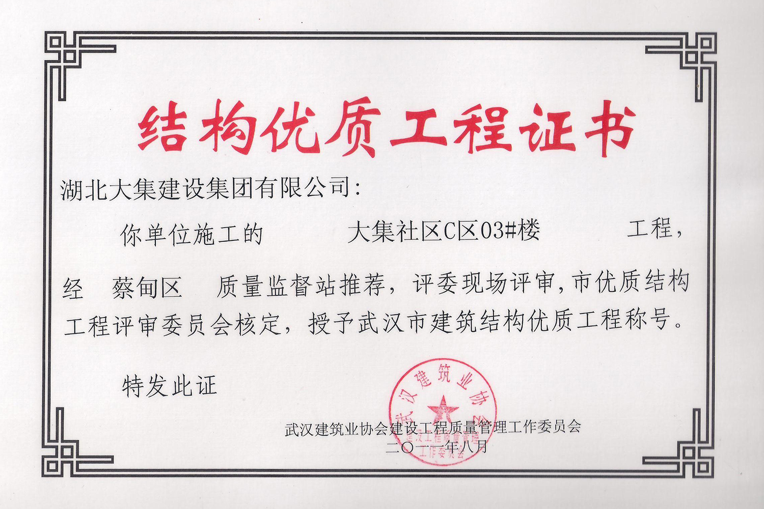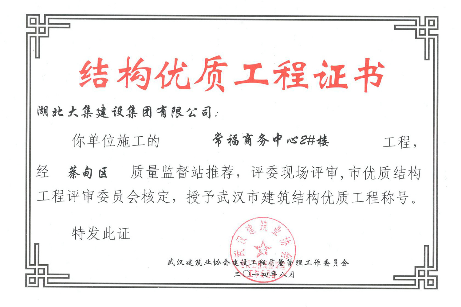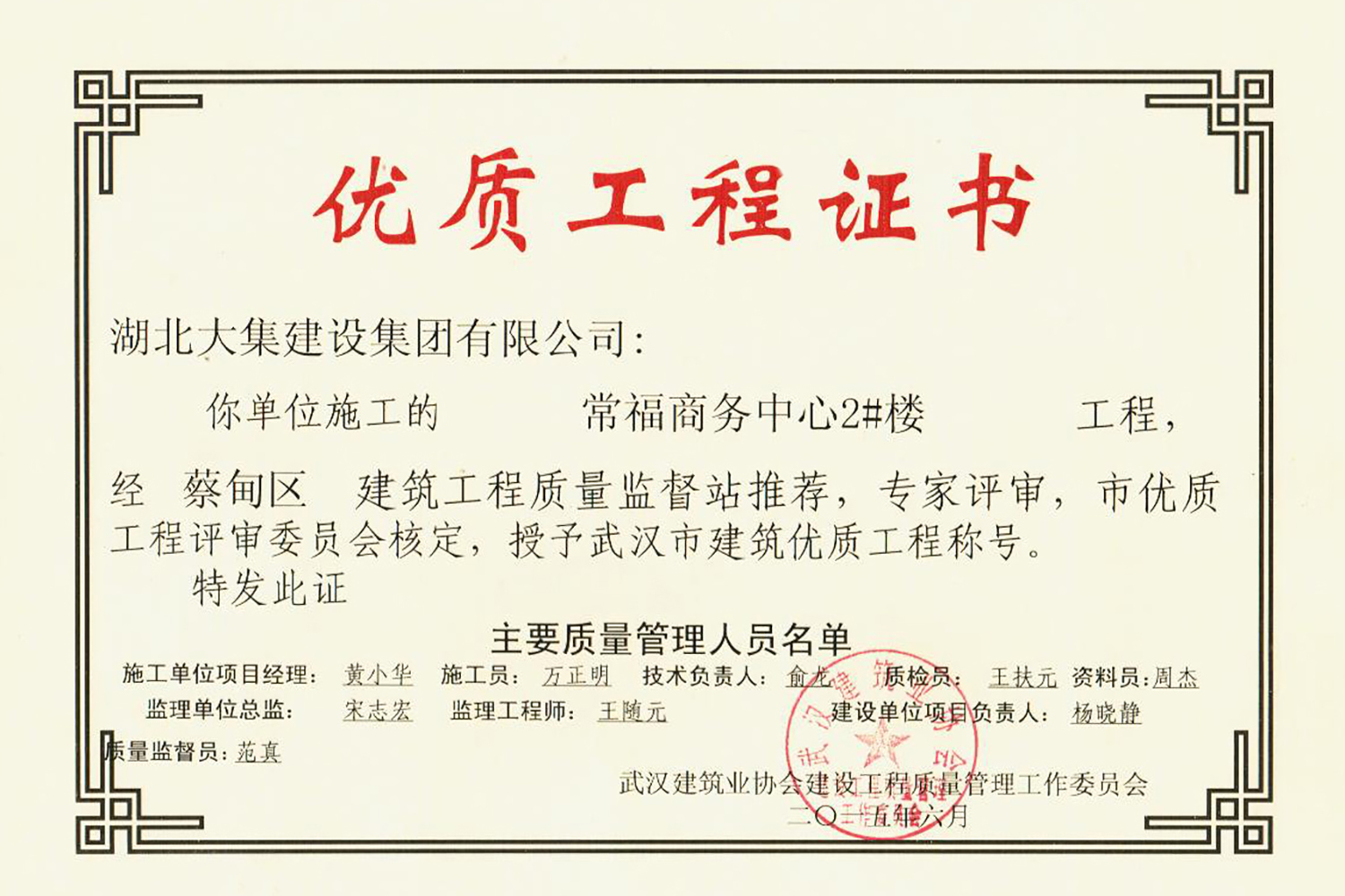 集團秉持“安全是紅線,質(zhì)量是品牌,文明施工是形象”的企業(yè)宗旨,不斷加強全面管理,注重提高自身素質(zhì),以完美的履約、優(yōu)良的質(zhì)量、滿意的服務,贏得了信譽。近年來,湖北大集建設集團先后與中石化集團、中鐵上海工程局、中建八局、中鐵十二局、碧桂園集團、世茂集團、綠地集團等央企、國企、地方標志性建設單位合作,先后承建了“碧桂園知音豪庭”項目、“碧桂園光谷云境”項目、“大集G區(qū)蓮溪花園”項目等多個高層住宅小區(qū);承建了世茂龍灣46#、47#、48#地塊、花博匯桃李春風二期等多個精品高端別墅群項目;承建了“南湖中學”、“南湖小學”、“南湖幼兒園”、“博奧幼兒園”等多個教育配套項目;承建了“孝感英眾超算終端科技產(chǎn)業(yè)園”、“鴻盛華全球航空服務產(chǎn)業(yè)園”、“盟盛汽車產(chǎn)業(yè)園”、“中原印務晶毅”等多個具有特殊設備安裝需求的鋼、混結構工業(yè)廠房項目;承建了“常福商務廣場”等大型商業(yè)綜合體;承建了后官湖綠道二期、三期,常貴路西延伸段、黃星大道等多條大型道路市政項目;自主開發(fā)了“聚盛晶尚”住宅項目,改善人居環(huán)境,引領綠色棲居新領域;所有工程嚴格執(zhí)行施工作業(yè)全過程質(zhì)量、安全管理,多個項目被省、市級監(jiān)管單位授予“省結構優(yōu)質(zhì)”、“省安全文明施工現(xiàn)場”、“市結構優(yōu)質(zhì)”、“市安全文明施工示范項目”、“樣板工地”等榮譽稱號。