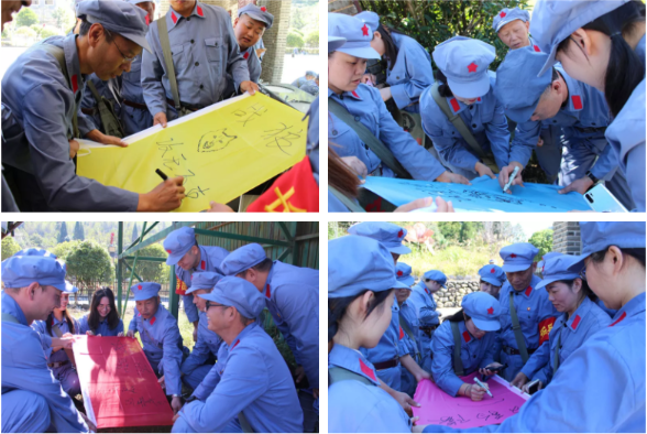 挺進領袖峰,在培訓教官的帶領下,學員們通過“重建紅軍部隊”、“搶渡大渡河”、“自做紅軍飯”等體驗教學,增強學員們團結協(xié)作、不怕吃苦、英勇頑強的精神。