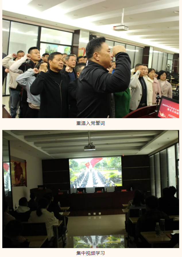 會(huì)議第二項(xiàng)議程,召開了4月份支部主題黨日活動(dòng)。會(huì)議上,全體黨員起立奏唱國(guó)歌,并重溫入黨誓詞。集團(tuán)黨支部書記宣讀了中共蔡甸區(qū)委組織部《2023年4月份黨支部主題日重點(diǎn)學(xué)習(xí)內(nèi)容》后,大家集中視頻學(xué)習(xí)了《如何推進(jìn)國(guó)家安全體系和能力現(xiàn)代化》內(nèi)容。