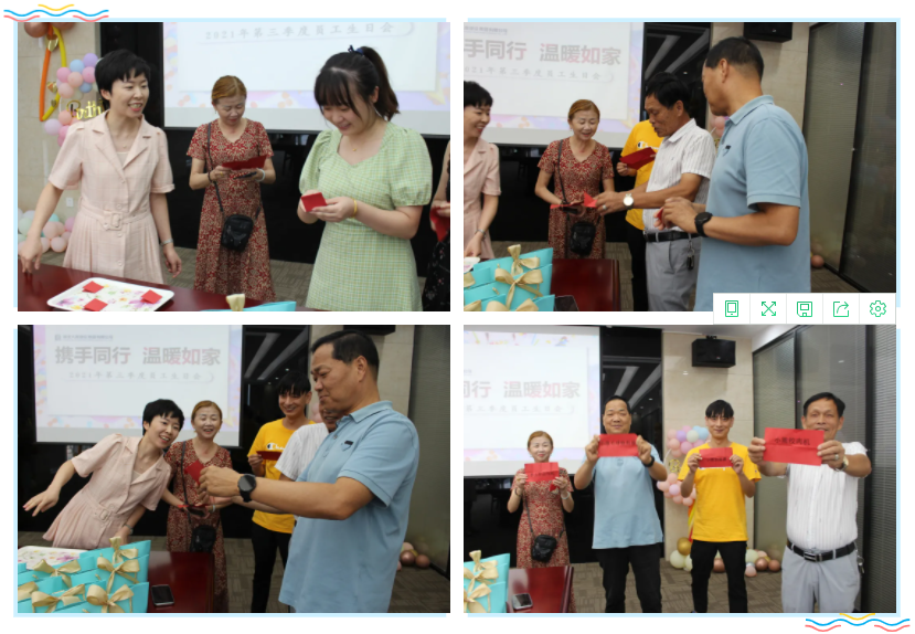 生日會(huì)簡短而熱烈,大家品嘗著香甜的蛋糕,不僅讓員工們在緊張繁忙的工作之余,享受活躍又溫暖的輕松時(shí)刻;同時(shí),也讓壽星們感受到了公司領(lǐng)導(dǎo)的關(guān)懷,感受到了集體的溫暖,進(jìn)一步增強(qiáng)了員工的集體榮譽(yù)感、歸屬感和責(zé)任心,增強(qiáng)了公司凝聚力。