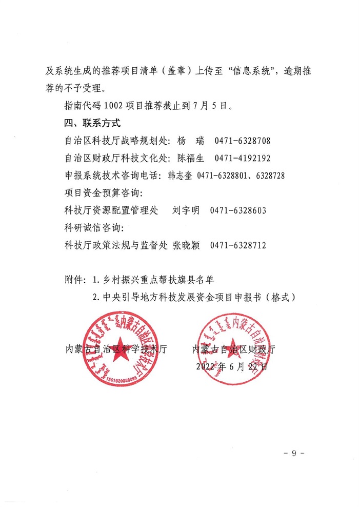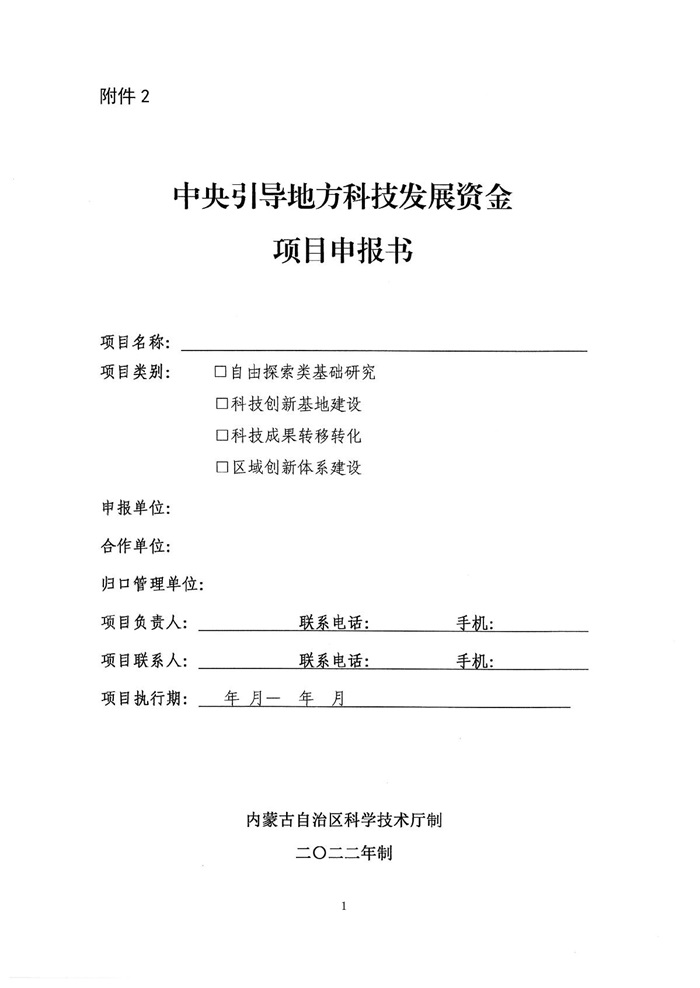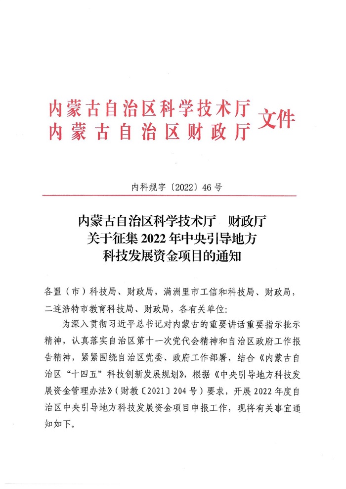內(nèi)蒙古自治區(qū)科學(xué)技術(shù)廳、財(cái)政廳關(guān)于征集2022年中央引導(dǎo)地方科技發(fā)展資金項(xiàng)目的通知