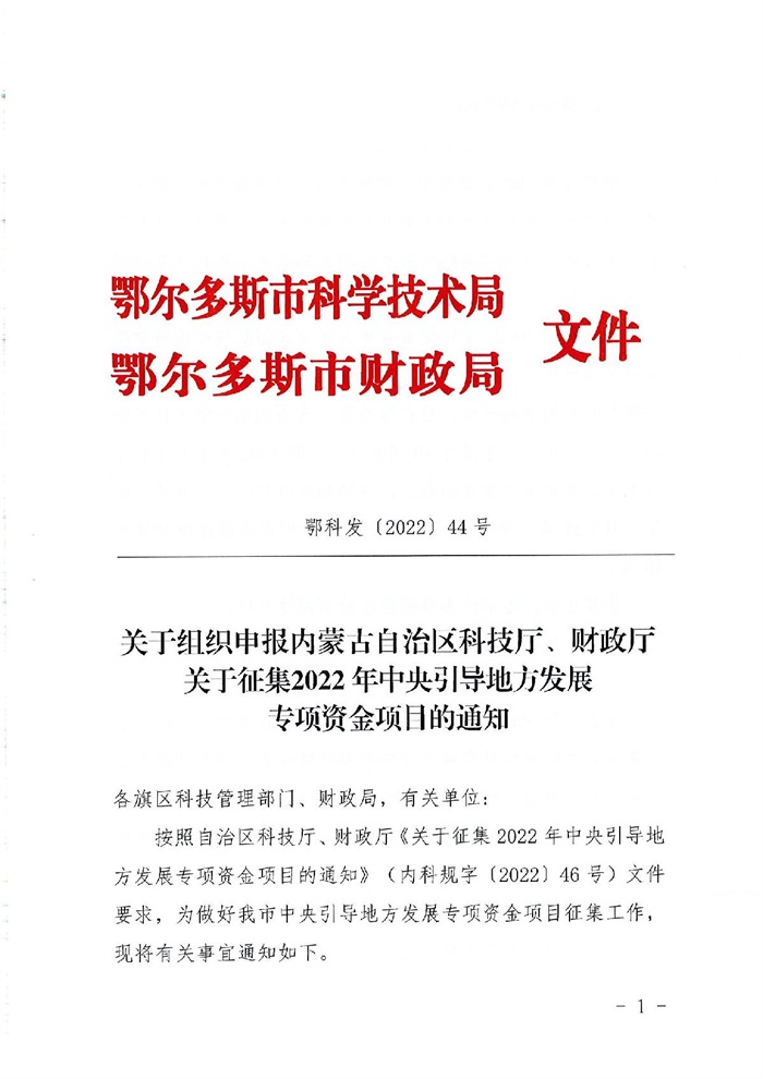 關(guān)于組織申報(bào)內(nèi)蒙古自治區(qū)科技廳、財(cái)政廳關(guān)于征集2022年中央引導(dǎo)地方發(fā)展專項(xiàng)資金項(xiàng)目的通知