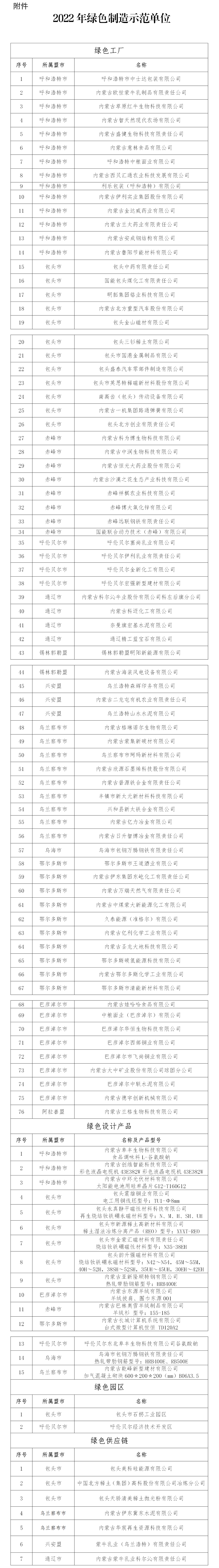 為完善綠色制造體系,全面推行綠色制造,助力工業(yè)領(lǐng)域?qū)崿F(xiàn)碳達(dá)峰、碳中和目標(biāo),按照《關(guān)于組織開(kāi)展2022年綠色制造示范單位申報(bào)的通知》(內(nèi)工信節(jié)綜字〔2022〕191號(hào))要求,組織開(kāi)展了綠色制造示范單位創(chuàng)建工作。經(jīng)企業(yè)自愿申報(bào),盟市工信局初審?fù)扑],第三方機(jī)構(gòu)組織專(zhuān)家綜合評(píng)價(jià),現(xiàn)將符合綠色工廠(chǎng)、綠色設(shè)計(jì)產(chǎn)品、綠色園區(qū)、綠色供應(yīng)鏈條件的示范單位予以公示(見(jiàn)附件)。如有異議,可在公示期內(nèi)反饋內(nèi)蒙古自治區(qū)工業(yè)和信息化廳,需書(shū)面反饋意見(jiàn)并明確事實(shí)依據(jù)、真實(shí)姓名及聯(lián)系方式。