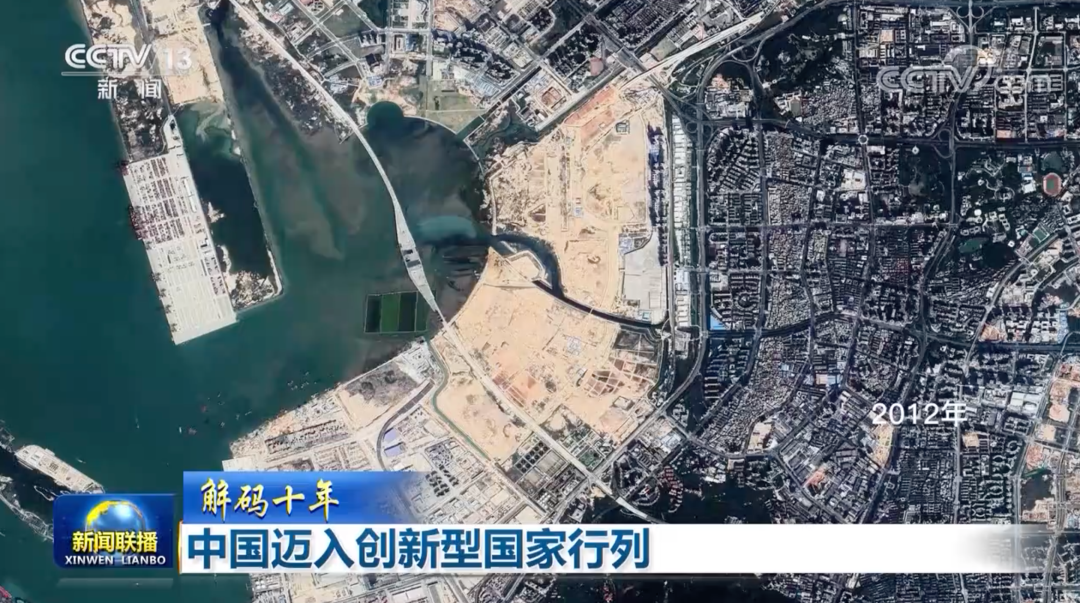 從2013年開始到現(xiàn)在,中國發(fā)射了多顆高分衛(wèi)星。通過高分衛(wèi)星持續(xù)觀察可以發(fā)現(xiàn),過去幾年,深圳前海是中國城市空間形態(tài)變化最大的區(qū)域之一。2012年,這里還是一片泥濘的灘涂;十年之間,一座座蘊藏著創(chuàng)新密碼的建筑物不斷茁壯成長。