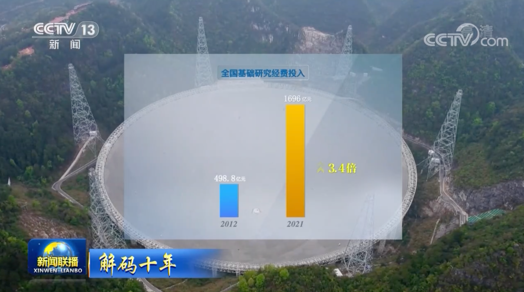 十年間,我國基礎(chǔ)研究經(jīng)費投入連年增加,2021年是2012年的3.4倍,占全社會研發(fā)投入比例達到歷史最高值。