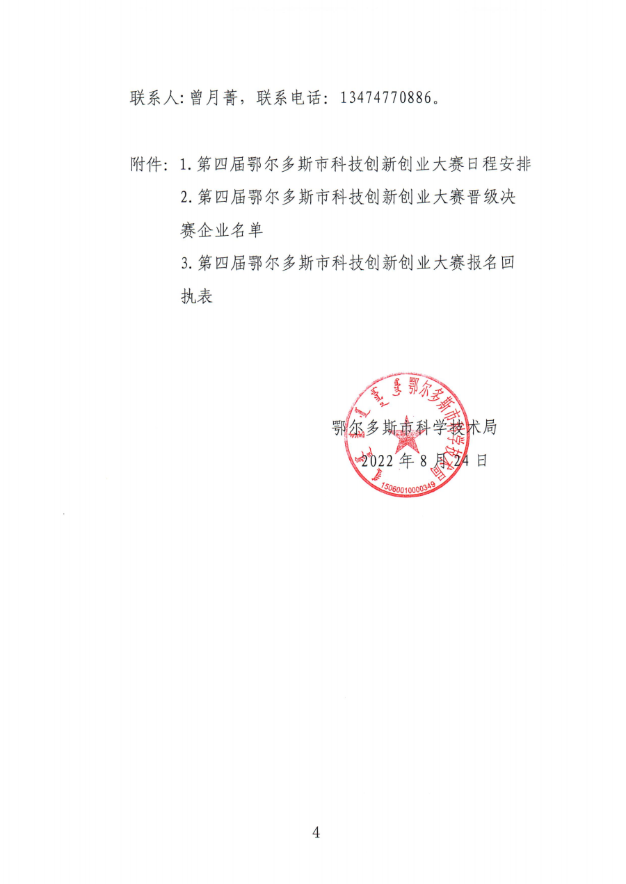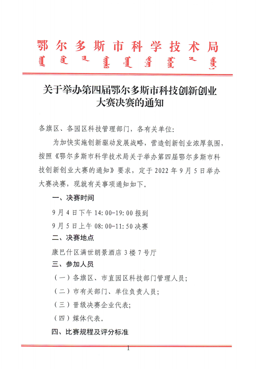 關(guān)于舉辦第四屆鄂爾多斯市科技創(chuàng)新創(chuàng)業(yè)大賽決賽的通知