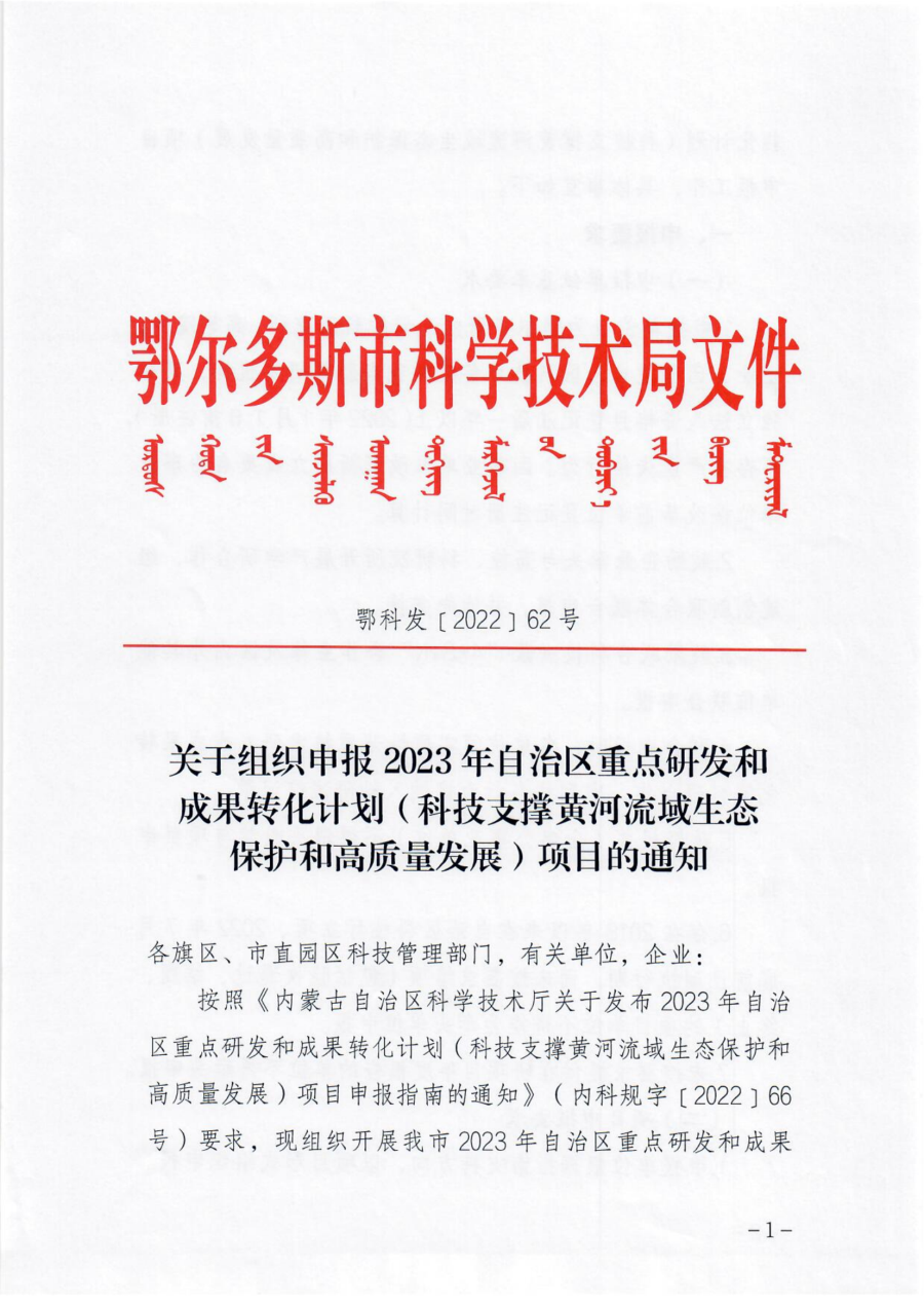 關(guān)于組織申報2023年自治區(qū)重點研發(fā)和成果轉(zhuǎn)化計劃(科技支撐黃河流域生態(tài)保護和高質(zhì)量發(fā)展)項目的通知