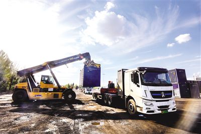 一輛輛新能源重卡仿佛揚帆起航的輕舟,通過國道、運煤專線匯集到鄂爾多斯市東勝區(qū)萬利陸港。