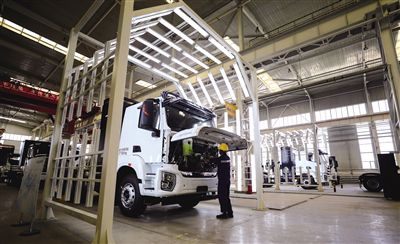 8月26日下午,一輛輛掛著氫燃料電池的白色重卡在生產線上接受一道又一道的檢查、調試,準備整裝待發(fā)……這是鄂爾多斯市伊金霍洛旗蒙蘇經(jīng)濟開發(fā)區(qū)的上汽集團新能源產業(yè)鏈項目。這里采用國內先進新能源重卡智能制造設備,是集整車裝配、檢測、發(fā)運于一體的新能源重卡生產基地,具備年產3000輛的生產能力。