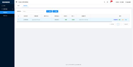 可以在右上角的消息提示看到審批通過的消息,可以查看審批歷史:
