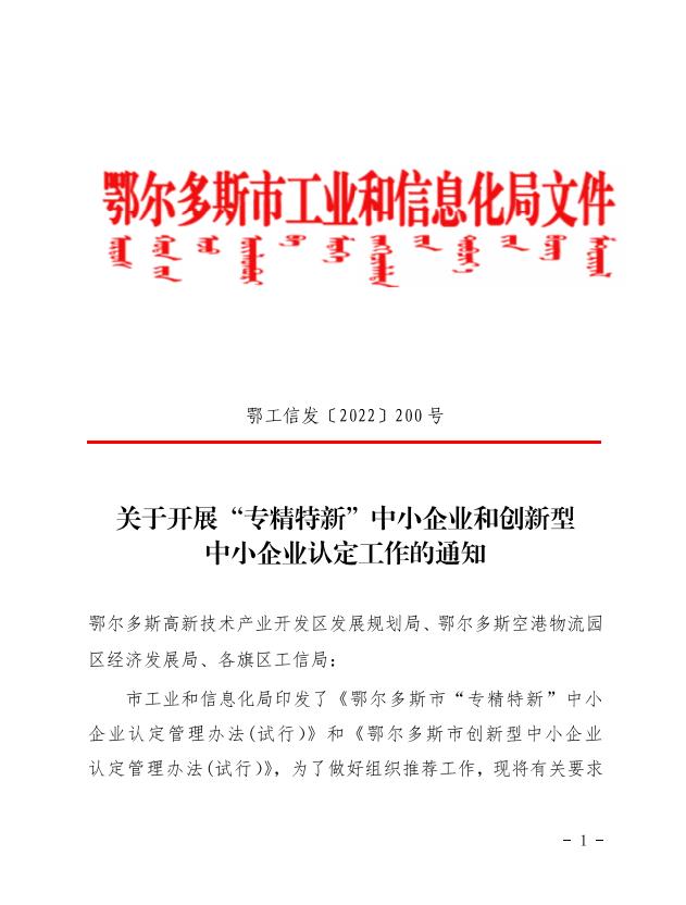 附件1.鄂爾多斯市“專(zhuān)精特新”中小企業(yè)認(rèn)定管理辦法(試行).doc