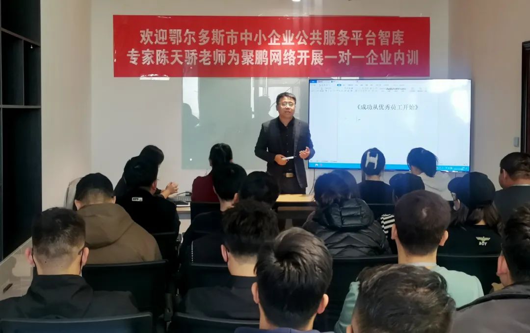為了增強(qiáng)員工團(tuán)隊(duì)和主人翁意識(shí),提高員工對(duì)自身價(jià)值的認(rèn)識(shí),助力企業(yè)長足發(fā)展。2022年11月22日,鄂爾多斯市中小企業(yè)公共服務(wù)平臺(tái)走進(jìn)鄂爾多斯市聚鵬網(wǎng)絡(luò)技術(shù)有限責(zé)任公司開展“成功從優(yōu)秀員工做起”精準(zhǔn)服務(wù)線下培訓(xùn)。本次培訓(xùn)特邀鄂爾多斯市中小企業(yè)公共服務(wù)平臺(tái)智庫專家、企業(yè)管理咨詢師陳天驕為大家開展培訓(xùn)。共計(jì)30余人參加培訓(xùn)。