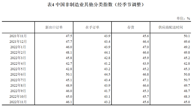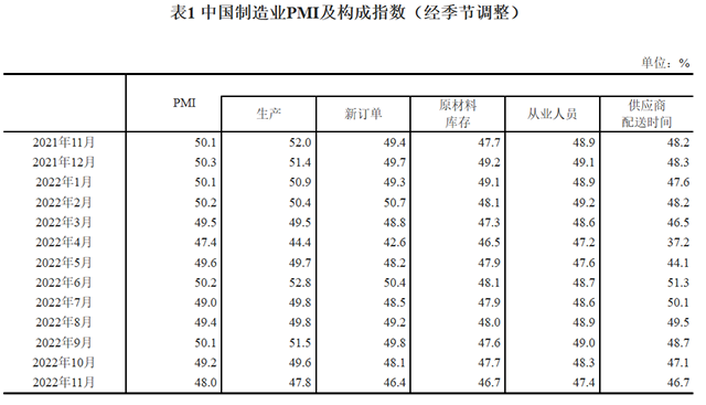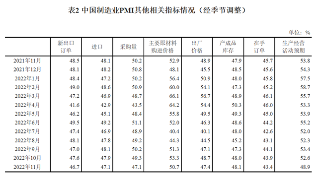 2022年11月中國采購經(jīng)理指數(shù)運行情況