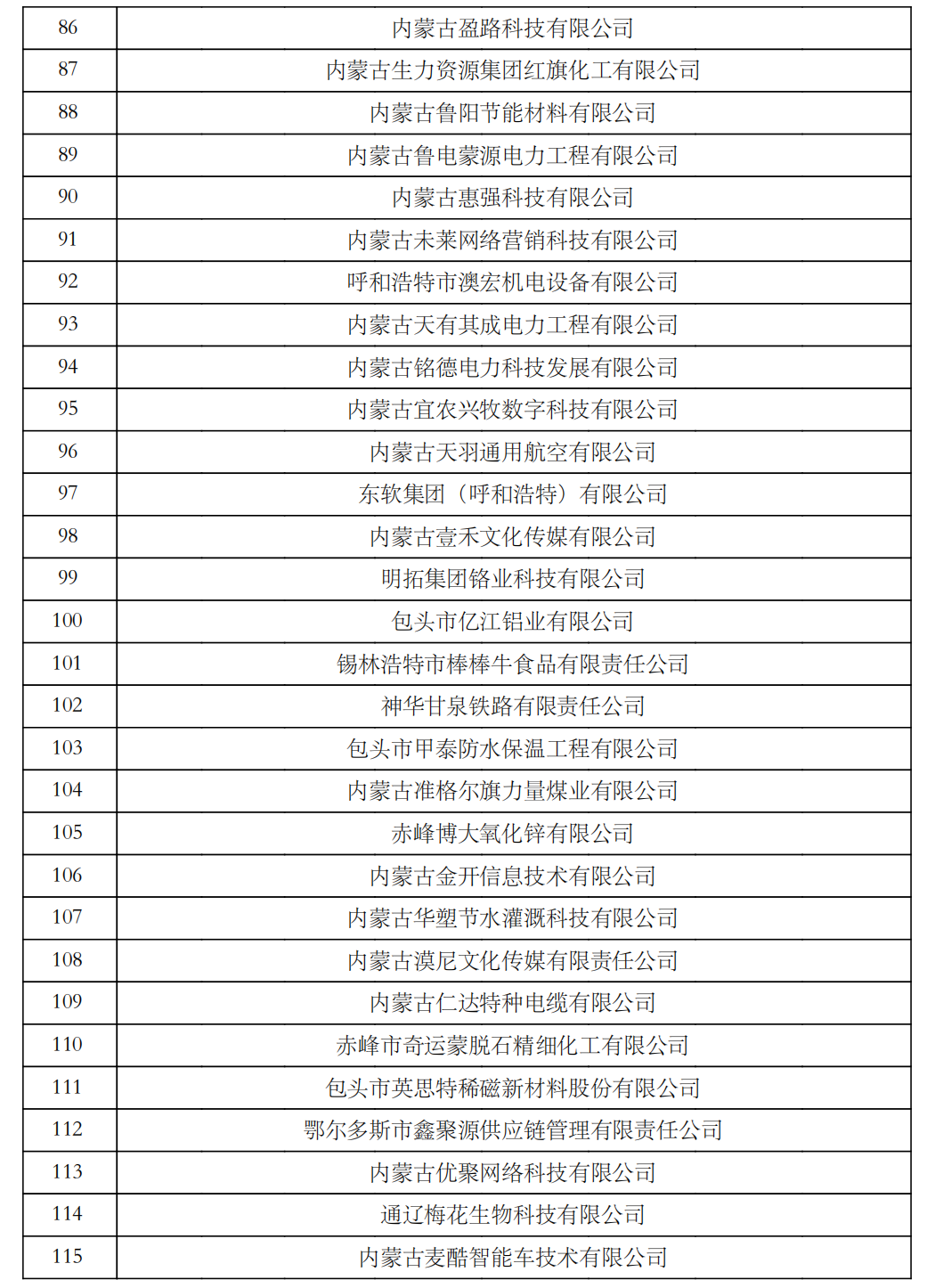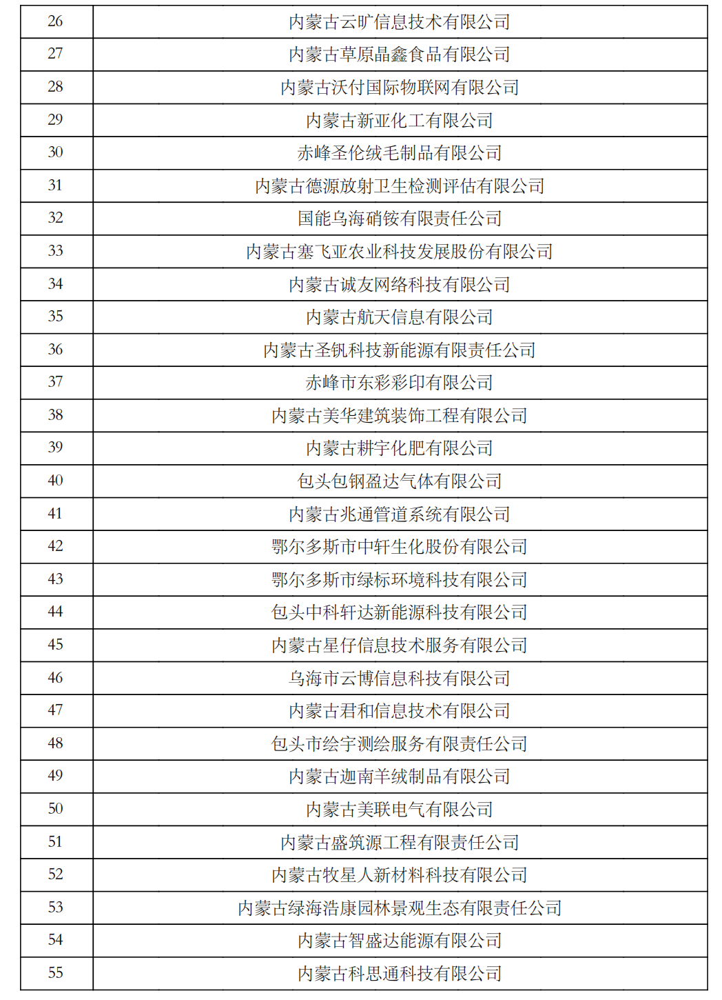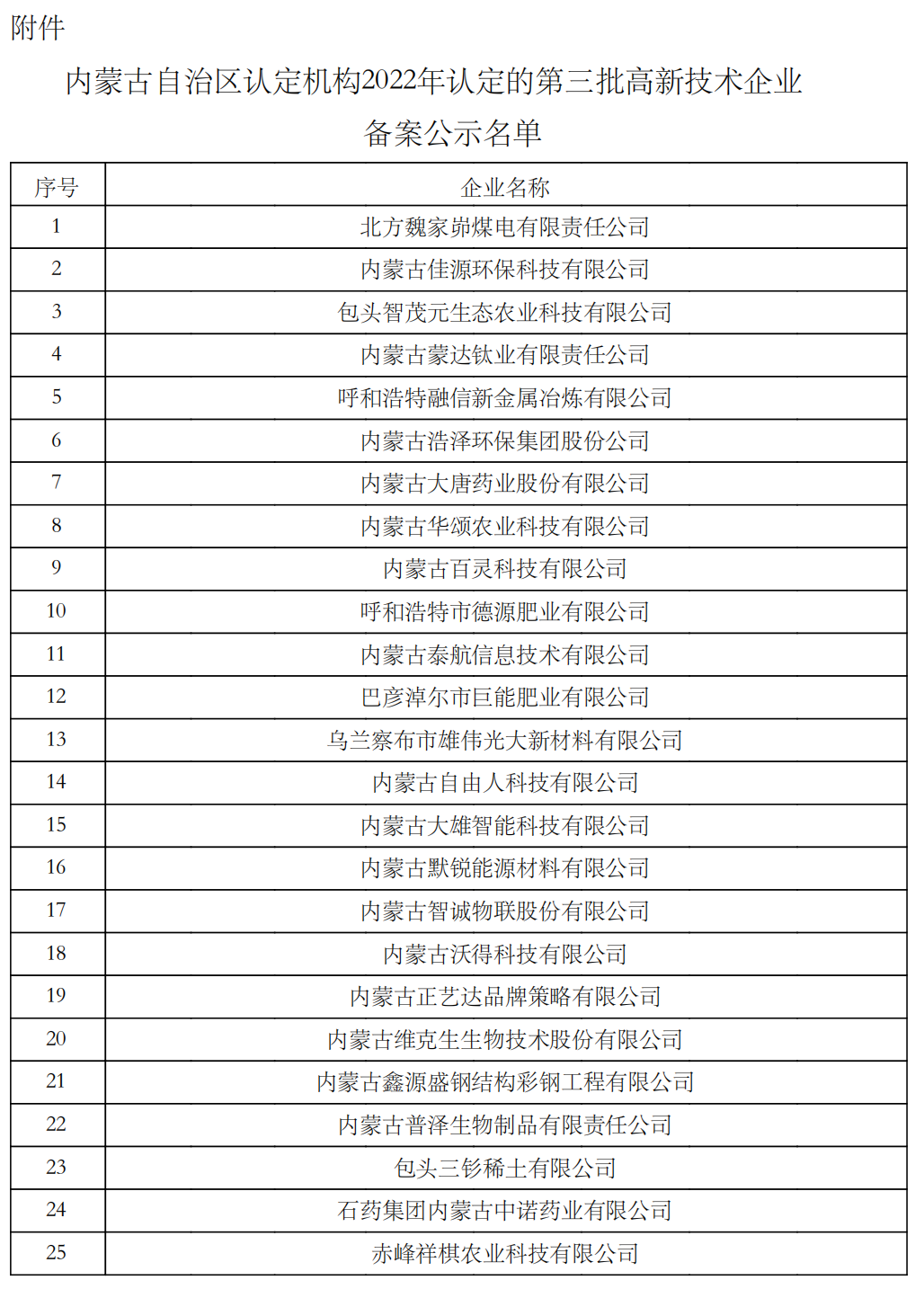 附件:內(nèi)蒙古自治區(qū)認(rèn)定機(jī)構(gòu)2022年認(rèn)定的第三批高新技術(shù)企業(yè)備案公示名單