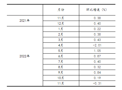 根據(jù)季節(jié)調(diào)整模型自動(dòng)修正結(jié)果,對(duì)2021年11月至2022年10月份規(guī)模以上工業(yè)增加值環(huán)比增速進(jìn)行修訂。修訂結(jié)果及2022年11月份環(huán)比數(shù)據(jù)如下: