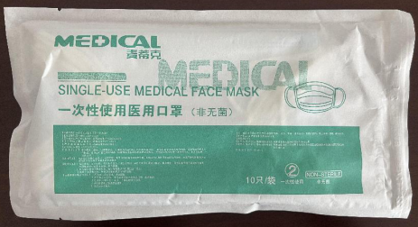 一次性使用醫(yī)用口罩(非無菌):尺寸為17.5cm*9.5cm,耳掛式口罩。由口罩體、鼻夾、口罩帶組成,口罩體為三層結(jié)構(gòu),均為聚丙烯材料,底層和面層由紡粘無紡布制成、過濾層由熔噴無紡布制成,鼻夾由可塑性材料制成。最小包裝10只/包,外包裝200包/箱。