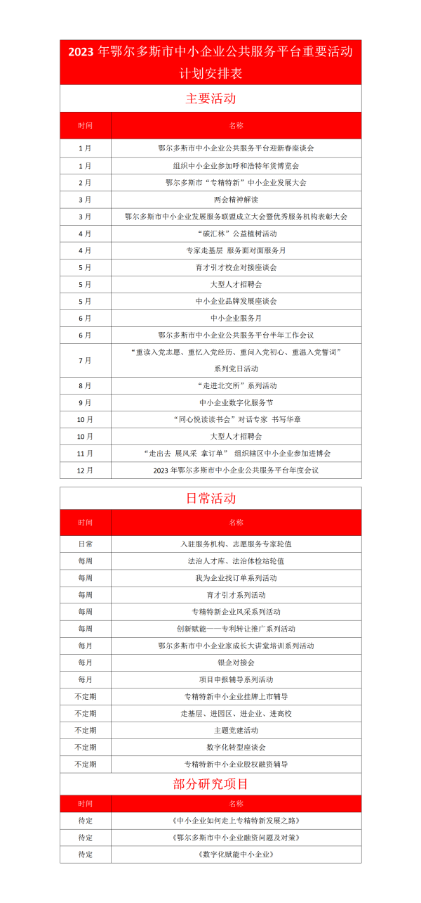 2023年,鄂爾多斯市中小企業(yè)公共服務(wù)平臺平臺將堅(jiān)決貫徹國家、自治區(qū)、鄂爾多斯市有關(guān)創(chuàng)新創(chuàng)業(yè)、中小企業(yè)健康發(fā)展的決策部署,在市工信局的領(lǐng)導(dǎo)和支持下,充分發(fā)揮骨干支撐作用,匯聚和帶動(dòng)各類優(yōu)質(zhì)服務(wù)資源,加強(qiáng)與相關(guān)職能部門溝通協(xié)作,踔厲奮發(fā),篤行不怠,以企業(yè)需求為導(dǎo)向,立足自身優(yōu)勢,以提升專業(yè)化能力為抓手,始終堅(jiān)持以公益性服務(wù)為基礎(chǔ),增值性服務(wù)為補(bǔ)充,收集企業(yè)的共性需求和個(gè)性化需求,并制定一企一策的解決方案,不斷優(yōu)化服務(wù)資源,拓寬服務(wù)領(lǐng)域,深化服務(wù)內(nèi)容,提升服務(wù)質(zhì)量。幫助中小企業(yè)紓困解難和創(chuàng)新賦能,不斷激發(fā)中小企業(yè)發(fā)展活力,為我市中小企業(yè)高質(zhì)量發(fā)展貢獻(xiàn)力量。