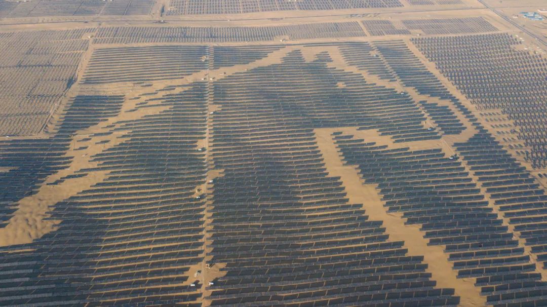 ● 鄂爾多斯國(guó)家可持續(xù)發(fā)展議程創(chuàng)新示范區(qū)內(nèi)的沙漠光伏電站