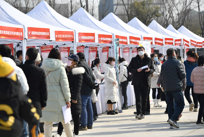 1月31日,求職者在西安市周至縣招聘會現(xiàn)場尋找工作機(jī)會。新華社記者 邵瑞 攝