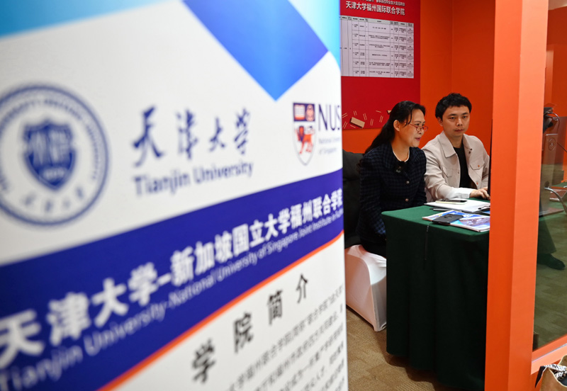 1月31日,天津大學(xué)福州國際聯(lián)合學(xué)院老師在2023年“好年華 聚福州”春季高校畢業(yè)生大型招聘會現(xiàn)場視頻面試專區(qū)向應(yīng)聘者介紹該校情況。新華社記者 林善傳 攝