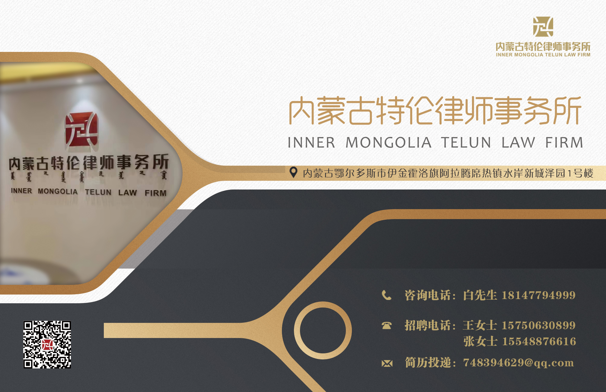內(nèi)蒙古特倫律師事務(wù)所是一家經(jīng)內(nèi)蒙古自治區(qū)司法廳批準成立的鄂爾多斯市直屬律師事務(wù)所,位于鄂爾多斯市康巴什區(qū)。本所由從業(yè)經(jīng)驗豐富、學歷與學術(shù)水平高超的優(yōu)秀法律人士組建的中大型合伙律師事務(wù)所。憑借其優(yōu)質(zhì)高效的管理、熟悉當?shù)卣谓?jīng)濟和社會環(huán)境的優(yōu)勢、豐富的辦案經(jīng)驗、優(yōu)秀的律師團隊,專注于為客戶提供優(yōu)質(zhì)、高效、全方位的法律服務(wù)。本所配備舒適的辦公環(huán)境、完整嚴密的工作機制;有完整的律師待遇保障機制、成熟的律師教育培訓方案、配套的文化制度體系;能夠準確、及時的掌握中國的最新立法動態(tài),并充分了解中國商業(yè)環(huán)境下客戶的需求,從而為客戶量身定制法律服務(wù)方案。善于把卓越的資源優(yōu)勢與專業(yè)技術(shù)知識相融合,幫助客戶應(yīng)對較為復(fù)雜的法律和商業(yè)環(huán)境,嚴格防控風險,將損失降到最低,將利潤最大化,為客戶提供一站式的綜合法律服務(wù)。