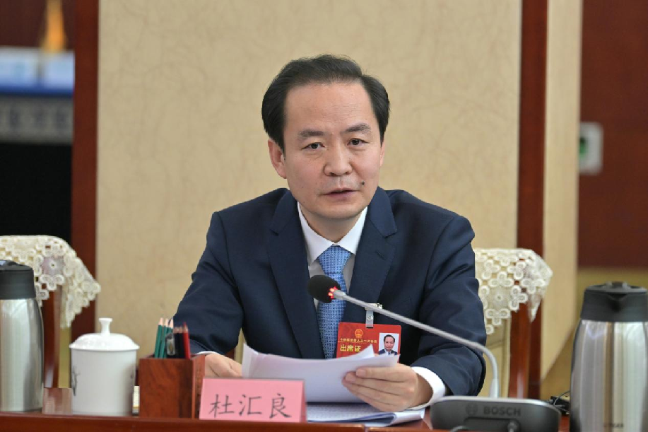 全國(guó)人大代表、內(nèi)蒙古自治區(qū)鄂爾多斯市委副書記、市長(zhǎng)杜匯良。新華網(wǎng)發(fā)(馬建荃 攝)