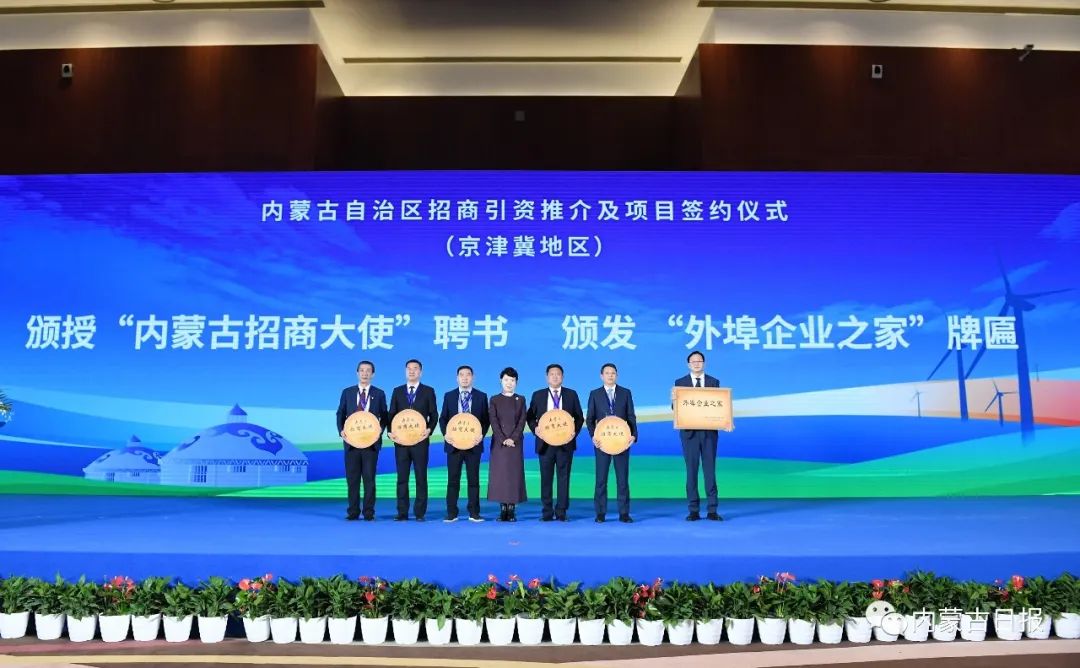 近200家企業(yè)參加此次推介及項目簽約,其中78家企業(yè)簽約80個項目、總額超2400億元。王莉霞為京津冀地區(qū)有關(guān)商會及自治區(qū)駐京辦負責(zé)同志頒授“內(nèi)蒙古招商大使”聘書、“外埠企業(yè)之家”牌匾。