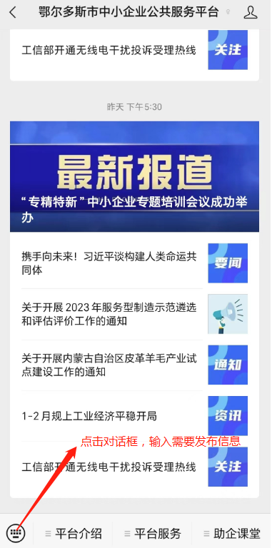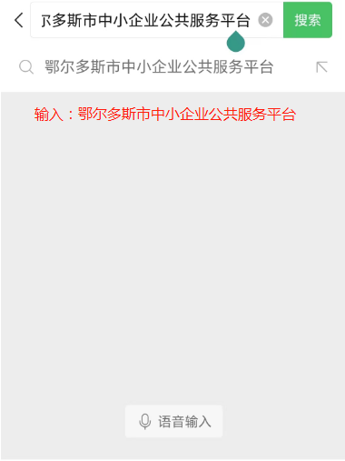 2.第二步:輸入微信公眾號:鄂爾多斯市中小企業(yè)公共服務(wù)平臺。