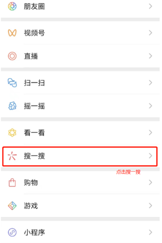 1.第一步:打開微信程序,點(diǎn)擊搜一搜。