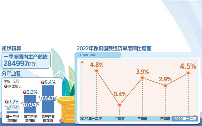 國(guó)家統(tǒng)計(jì)局4月18日發(fā)布的數(shù)據(jù)顯示,初步核算,一季度國(guó)內(nèi)生產(chǎn)總值284997億元,按不變價(jià)格計(jì)算,同比增長(zhǎng)4.5%。