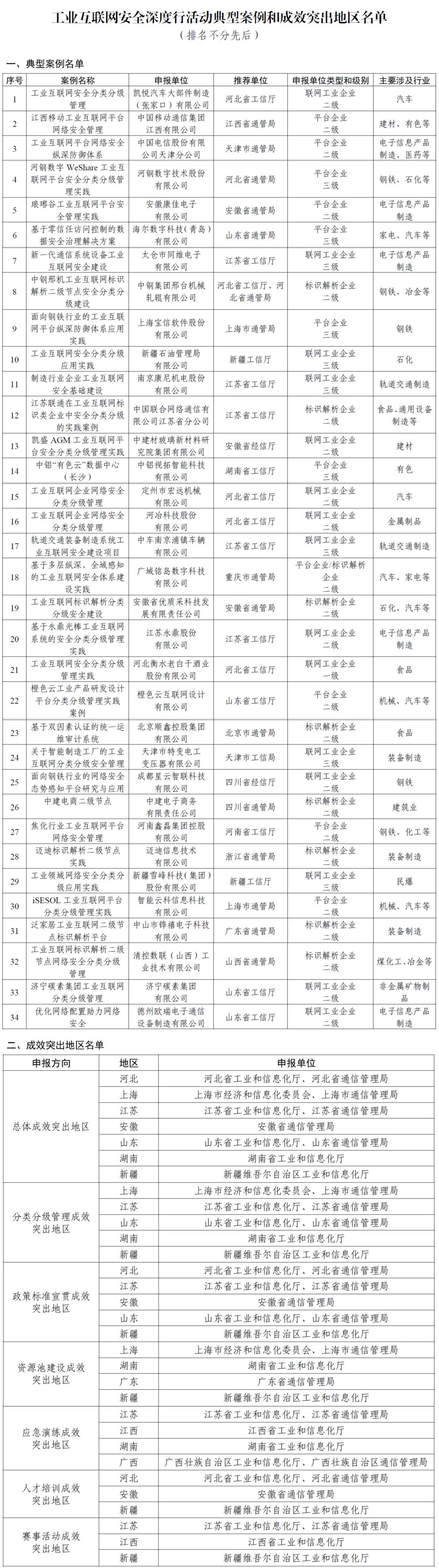 關(guān)于公布工業(yè)互聯(lián)網(wǎng)安全深度行活動(dòng)典型案例和成效突出地區(qū)名單的通知