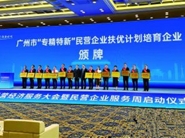 2021年廣州市民營經(jīng)濟服務大會暨民營企業(yè)服務周啟動儀式上,主辦方為廣州市“專精特新”民營企業(yè)扶優(yōu)計劃培育企業(yè)頒牌。 南方日報記者 譚超 攝