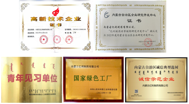 億利制藥是國(guó)家高新技術(shù)企業(yè)和國(guó)家綠色工廠,也是內(nèi)蒙古自治區(qū)指定的特藥生產(chǎn)企業(yè),2021年獲得了自治區(qū)肉蓯蓉藥食同源試點(diǎn)單位。