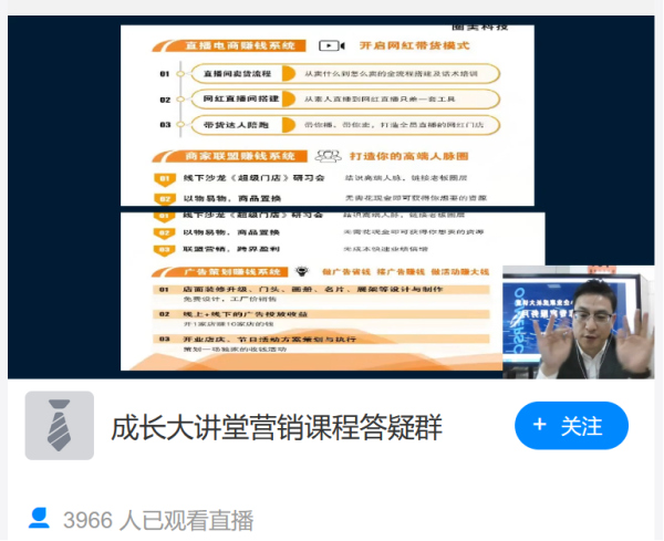本次直播課程中,邊強重點講解了商業(yè)模式的重要性以及如何設計商業(yè)模式,并通過免費體驗模式、會員鎖客模式、爆品贈品模式、社群私域模式、易貨置換模式、“三網合一”海陸空模式六個模式進行了全面詳細的闡述。