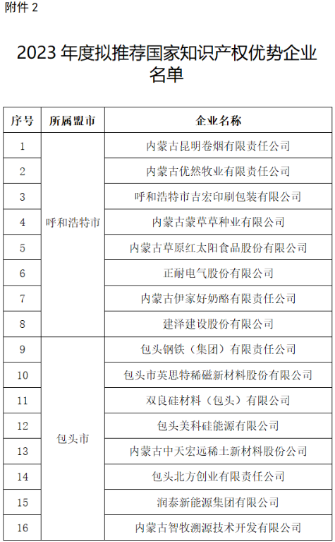2.2023年度擬推薦國家知識產(chǎn)權(quán)優(yōu)勢企業(yè)名單