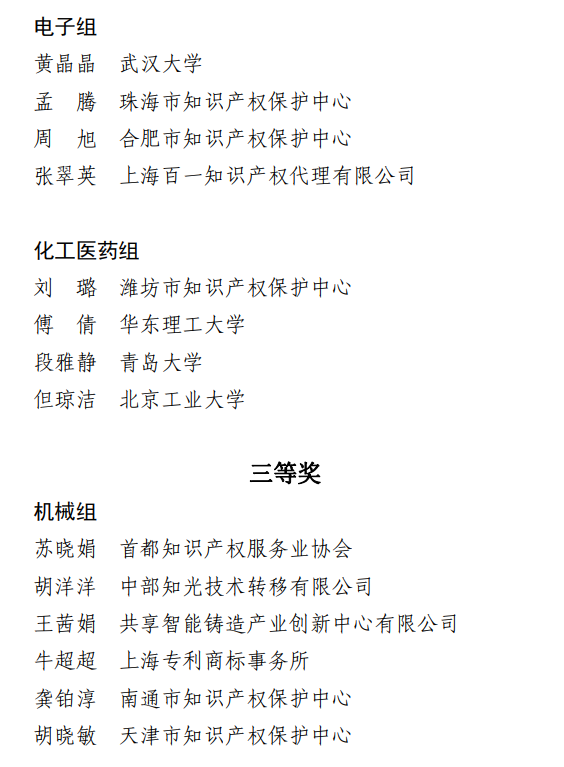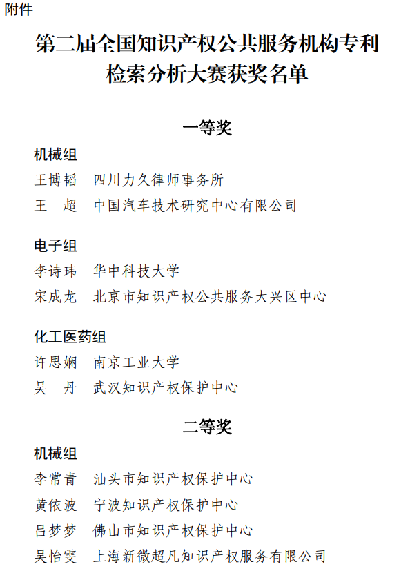 附件:第二屆全國知識產(chǎn)權公共服務機構專利檢索分析大賽獲獎名單