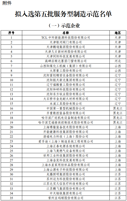 根據(jù)《關(guān)于開展2023年服務(wù)型制造示范遴選和評估評價工作的通知》(工信廳政法函﹝2023﹞42號),現(xiàn)將擬入選第五批服務(wù)型制造示范名單進(jìn)行公示,請社會各界監(jiān)督。如有異議,請在公示期內(nèi)將意見書面反饋(單位提出意見需加蓋公章)至工業(yè)和信息化部產(chǎn)業(yè)政策與法規(guī)司(產(chǎn)業(yè)融合發(fā)展處)。