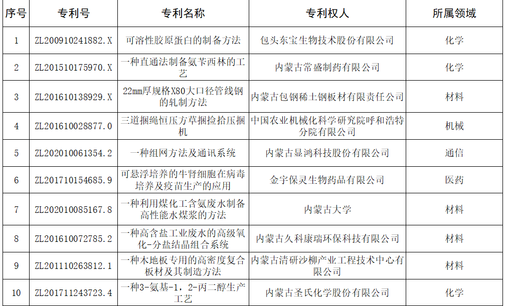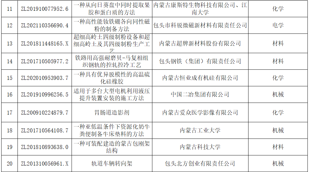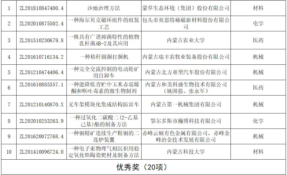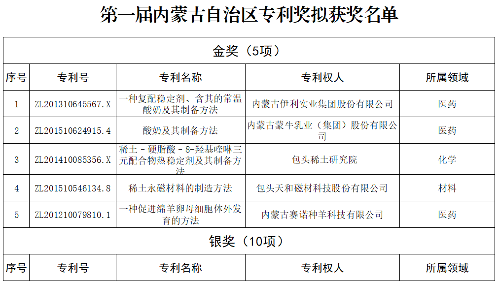 附件:第一屆內蒙古自治區(qū)專利獎擬獲獎名單