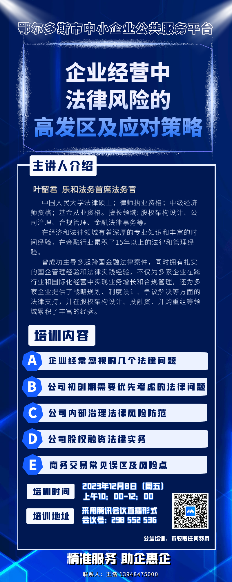 【企業(yè)經(jīng)營(yíng)中法律風(fēng)險(xiǎn)的高發(fā)區(qū)及應(yīng)對(duì)策略】 8日上午騰訊會(huì)議公益開播!