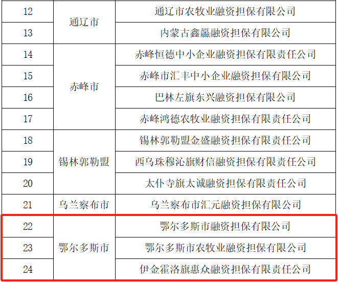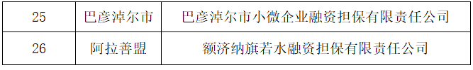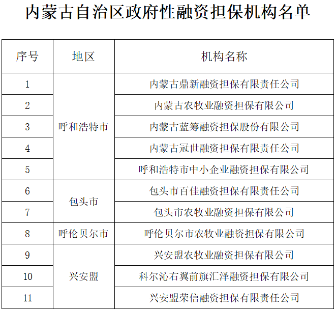 內(nèi)蒙古自治區(qū)政府性融資擔(dān)保機(jī)構(gòu)名單的通知