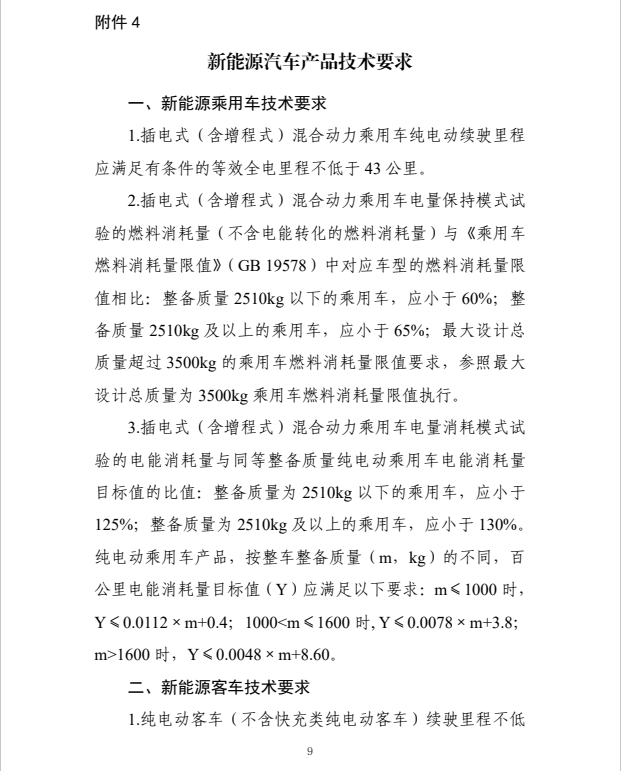 (二)項(xiàng)中涉及的新能源汽車產(chǎn)品技術(shù)標(biāo)準(zhǔn)進(jìn)行調(diào)整,具體要求見本公告附件4。