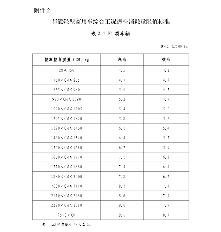 2.節(jié)能輕型商用車綜合工況燃料消耗量限值標(biāo)準(zhǔn)